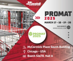 Cassioli pokonuje granice własnego kraju i w 2025 roku, oprócz licznych targów w Europie i Brazylii, zawita również do Chicago na targi Promat, jednej z najważniejszych wystaw w sektorze intralogistyki w Stanach Zjednoczonych Ameryki. Z ponad 1000 wiodących na świecie dostawców rozwiązań w zakresie produkcji i łańcucha dostaw, Promat skupia ludzi, technologie i rewolucyjne pomysły, które kształtują przyszłość tej branży.