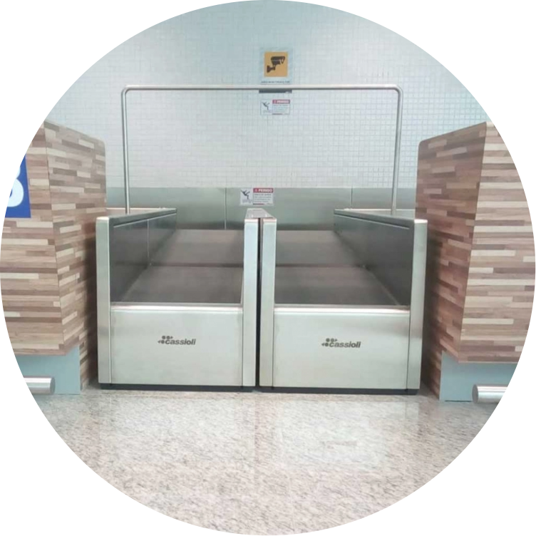 Systemy odpraw Cassioli umożliwiają przyspieszenie operacji dostawy bagażu pasażerów na lotnisku oraz szybki i punktualny transport bagaży do luku bagażowego samolotu za pomocą automatycznych przenośników. Precyzyjny dobór materiałów i staranna produkcja poszczególnych części decyduje o wysokiej jakości stanowiska ważenia i transportu. Nowoczesny design konstrukcji obejmuje szerokie zastosowanie stali nierdzewnej, co w połączeniu ze szczególnie cichą pracą urządzenia sprawia, że stacja nadaje się do najnowocześniejszych i najbardziej technologicznie zaawansowanych holi lotniskowych.