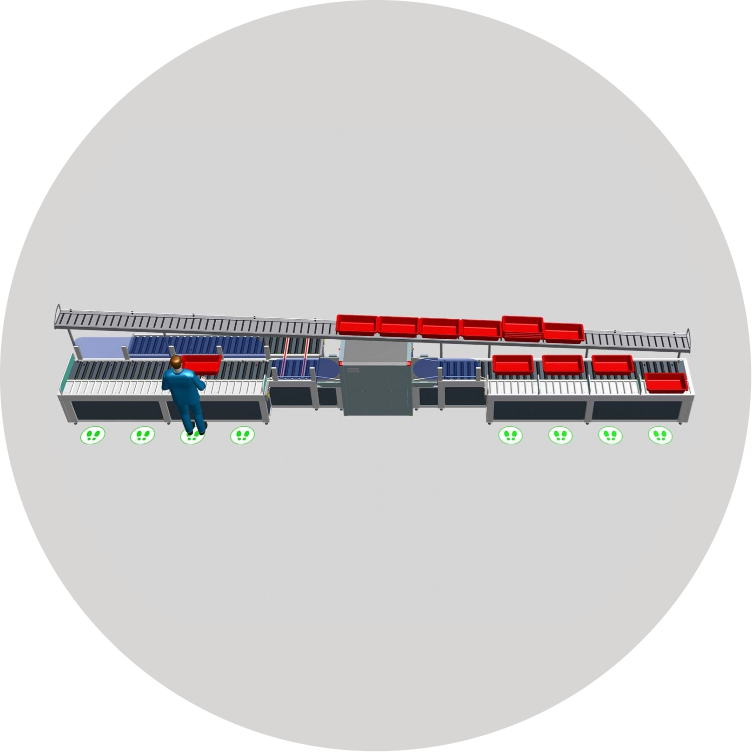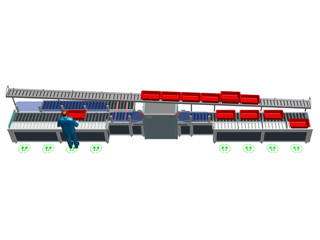 Innowacyjna linia do sortowania podejrzanego bagażu lotniskowego umożliwia szybkie i w pełni zautomatyzowane selekcjonowanie tac uznanych za „podejrzane”, tzn. niezgodne z normami bezpieczeństwa. Tace są transportowane z wysoką prędkością przez urządzenie zmieniające. Czas potrzebny do wykonania przekierowania wynosi mniej niż 1,5 sekundy. Ten specjalny system gwarantuje bardzo krótkie czasy reakcji i brak zakłóceń na torze tac.