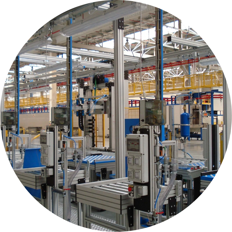 Cassioli projektuje najbardziej odpowiednie systemy do obsługi całych linii montażowych lub pomocniczych dla ręcznych lub automatycznych stanowisk roboczych.