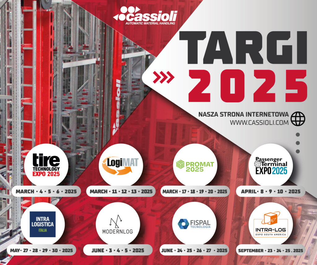 W 2025 roku Cassioli będzie uczestniczyć w jednych z najważniejszych międzynarodowych wydarzeń w dziedzinie intralogistyki i automatyzacji przemysłowej. Firma weźmie